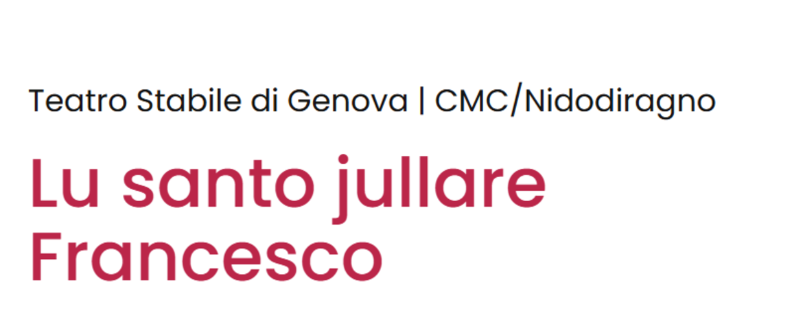 Lu santo jullare Francesco di Dario Fo è una fabulazione sulla vita del santo di Assisi che riprende, nel virtuosistico e teatralissimo linguaggio del grammelot, gli stili e le forme del narrare del mitico Mistero Buffo dell’autore Premio Nobel.