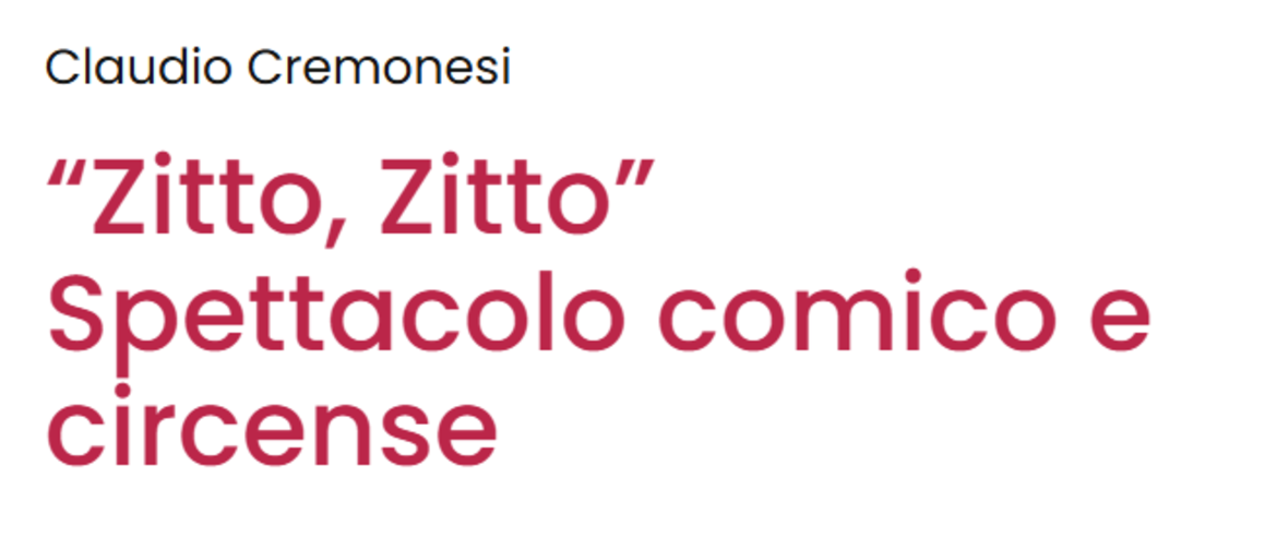 “Zitto, Zitto”, uno spettacolo che in realtà “parla parla”, a tutti. Un antidoto ad ogni distanziamento sociale, un pretesto per giocare insieme.