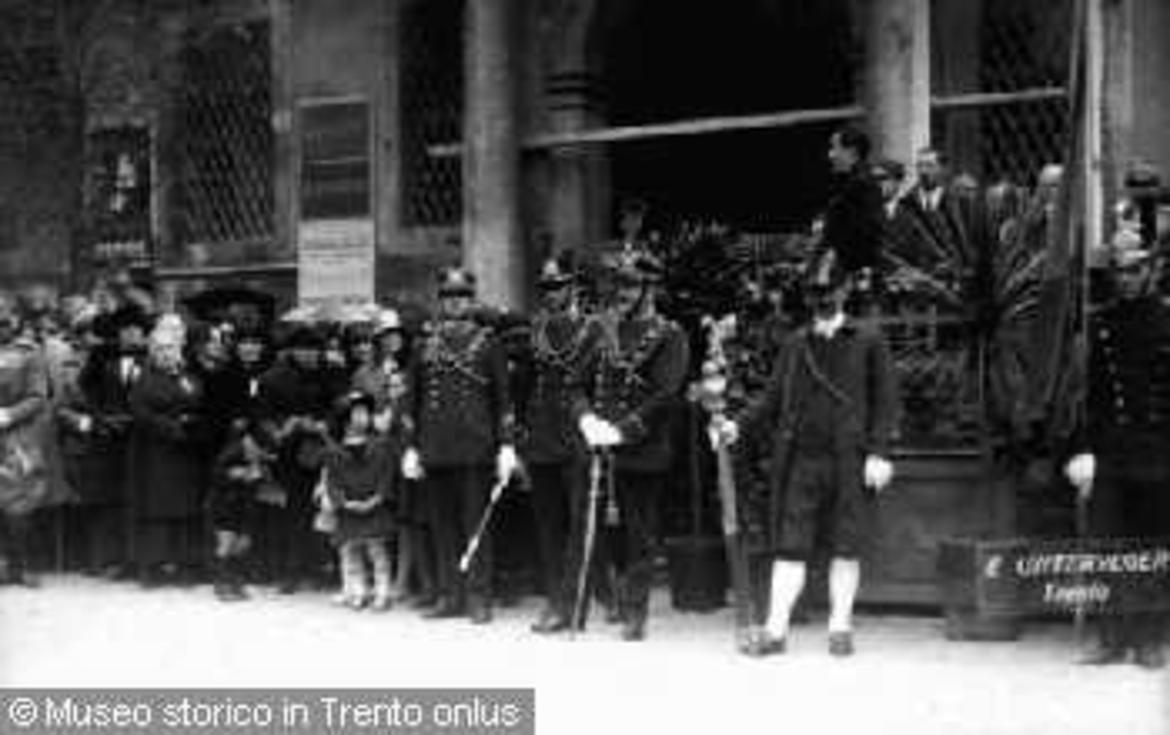 - TRENTO, PIAZZA DUOMO. PALCO DELLE AUTORITÀ, A LATO MADRI E VEDOVE DEI CADUTI . 4 NOV. 1923