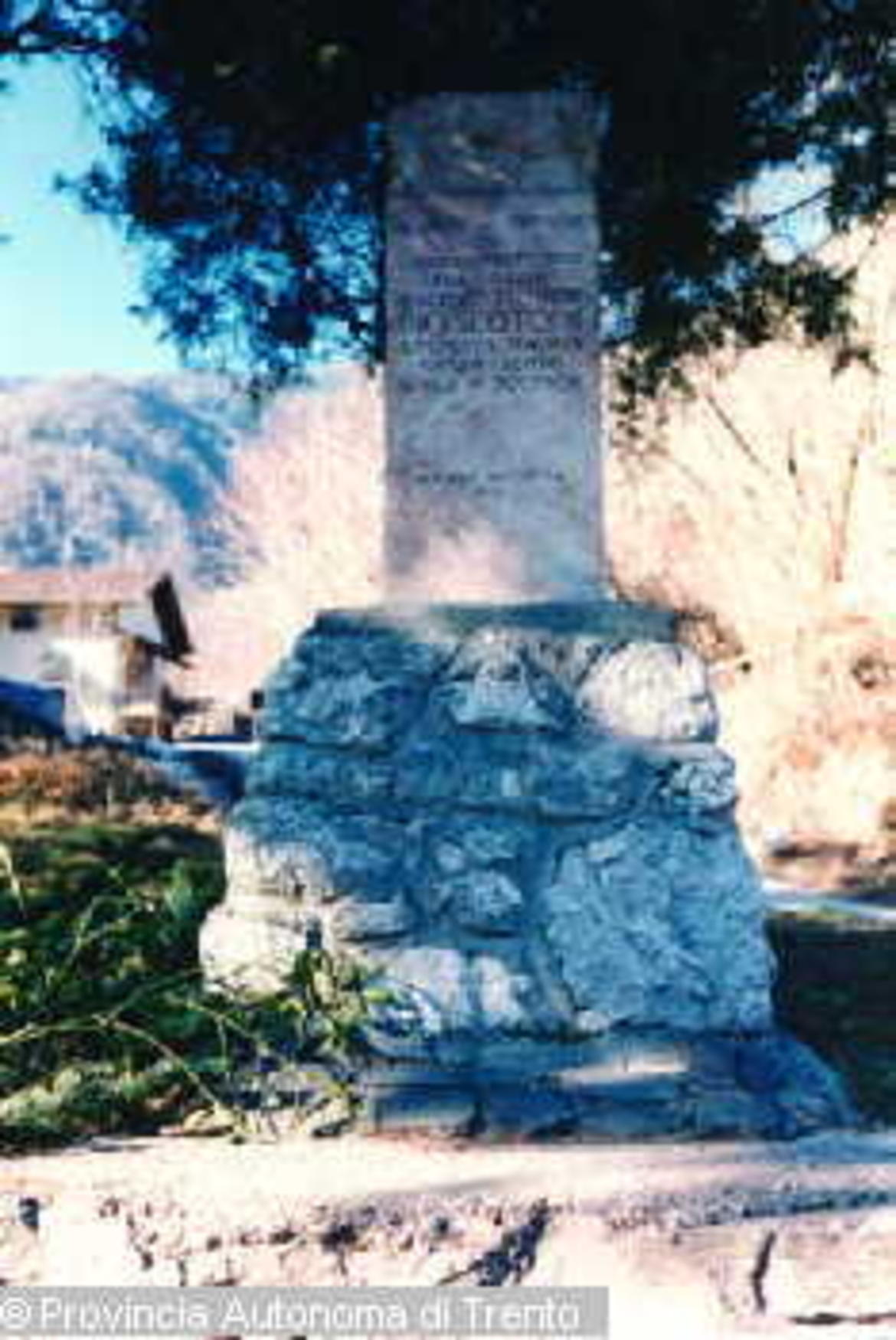 - VALSUGANA, NOVALEDO (TN). VEDUTA DEL CIPPO POSTO DALLA LEGIONE TRENTINA IN MEMORIA DI PIO SCOTONI