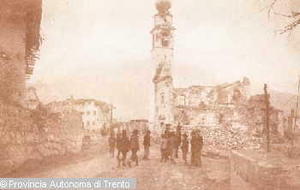 - MARCO DI ROVERETO (TN). CIVILI DAVANTI ALLA CHIESA DI MARCO DISTRUTTA DAI BOMBARDAMENTI