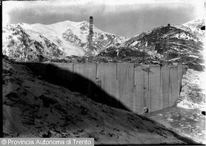 Cantiere per la costruzione della diga di Careser, Val di Pejo, Trentino