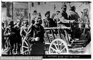 Cesare Battisti mentre attraversa Trento dopo la cattura