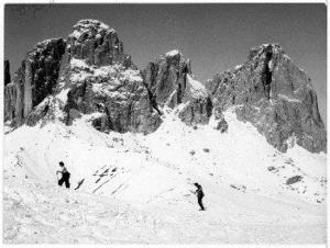 Dolomiti / Scialpinisti in escursione sotto il Sassolungo