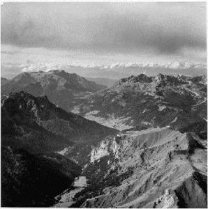 Dolomiti / Veduta panoramica della Val San Nicolò sullo sfondo dei gruppi del Catinaccio e del Latem