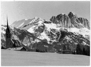 Dolomiti / Vigo di Fassa sullo sfondo del Gruppo del Catinaccio / Veduta invernale