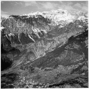 Dolomiti di Brenta / Veduta di S. Lorenzo in Banale sullo sfondo del Brenta / Ripresa aerea