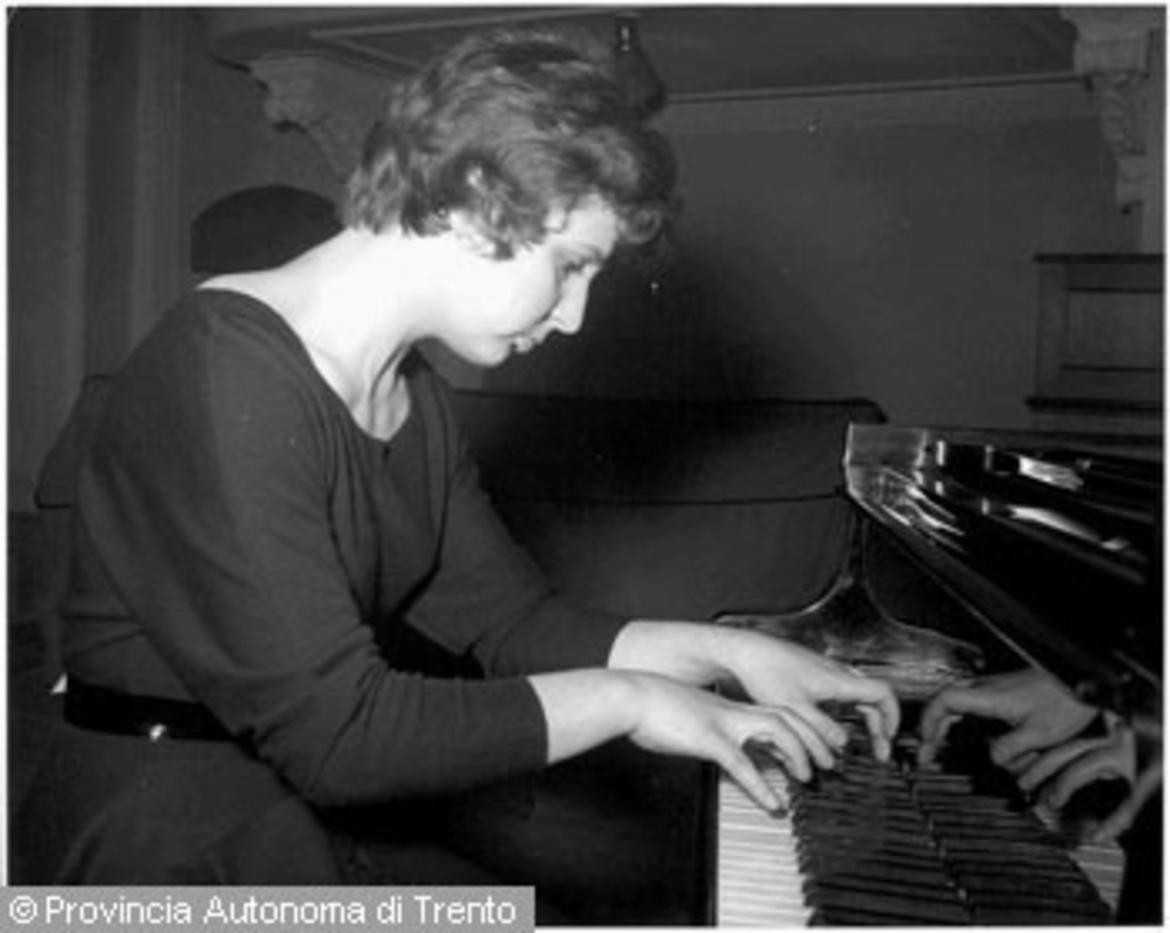 Donna al pianoforte durante l'esecuzione di un pezzo