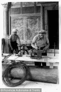 Due artigiani al lavoro nella Loggia Veneziana, Castello del Buonconsiglio, Trento