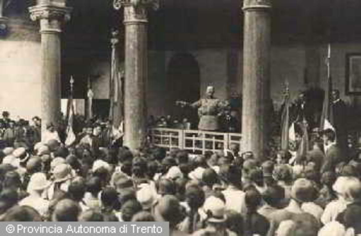 - TRENTO. MOMENTO DELLA CERIMONIA PER IL GIUBILEO REALE, PARLA IL COL. GIOVANNI RIGONI. 1925