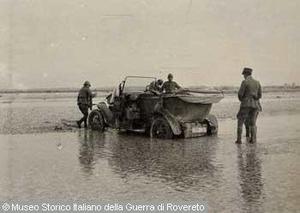 LA VETTURA DELLA SEZIONE FOTOCINEMATOGRAFICA ATTRAVERSA IL TAGLIAMENTO