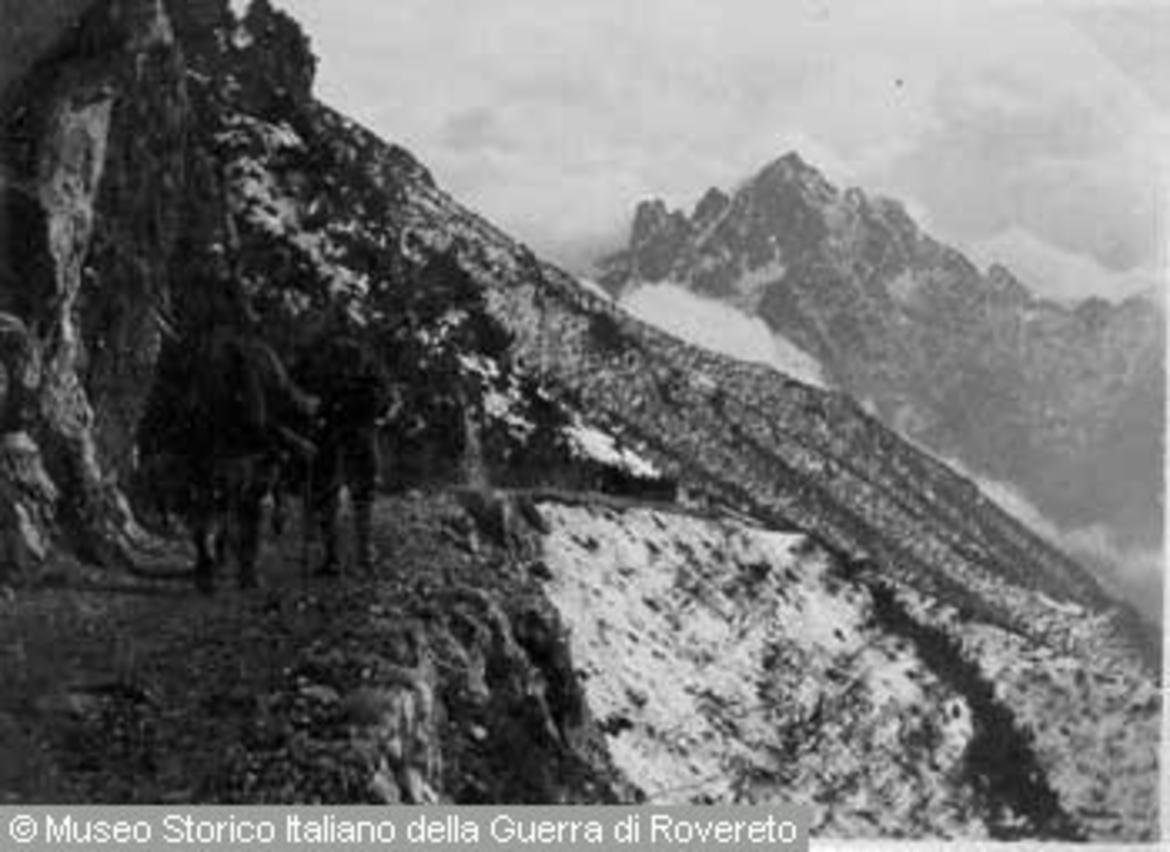 [MONTE PASUBIO - MILITARI LUNGO LA MULATTIERA IN VAL DI FIENO - SULLO SFONDO M. CORNETTO]