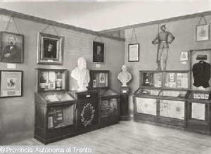 - TRENTO, CASTELLO DEL BUONCONSIGLIO. MUSEO DEL RISORGIMENTO E DELLA LOTTA PER LA LIBERTA'. VEDUTA DELLA SALA DELLA STORIA DEL TRENTINIO, ANGOLO DEDICATO A GIOVANNI PRATI, ANTONIO ROSMINI, GAZZOLETTI