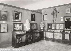 - TRENTO, CASTELLO DEL BUONCONSIGLIO. MUSEO DEL RISORGIMENTO E DELLA LOTTA PER LA LIBERTA'. VEDUTA DELLA SALA DELLA STORIA DEL TRENTINIO, ANGOLO DEDICATO A GIOVANNI PRATI, ANTONIO ROSMINI, GAZZOLETTI
