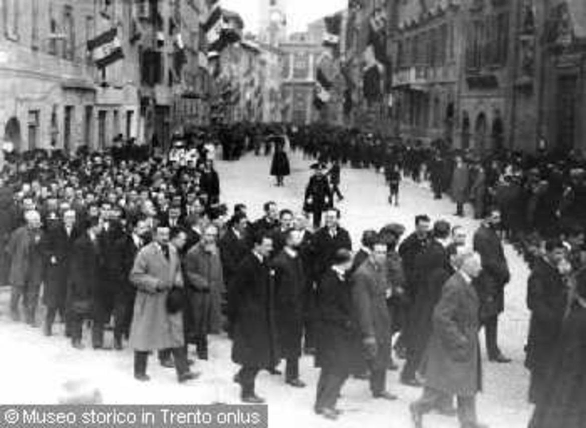- TRENTO, VIA BELENZANI. CORTEO FUNEBRE PER IL FUNERALE DI GUIDO POLI. 18 NOV. 1923