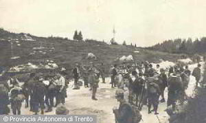 - GRUPPO DI ALPINI E UOMINI IN ABITI CIVILI DURANTE UNA SOSTA