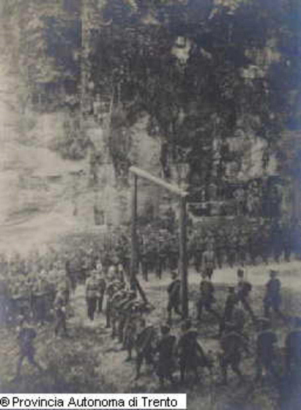 - TRENTO. FOSSA DELLA CERVARA, CASTELLO DEL BUONCONSIGLIO. PLOTONE D'ESECUZIONE SCHIERATO PER L'ESECUZIONE DI DAMIANO CHIESA. 19 MAG. 1916