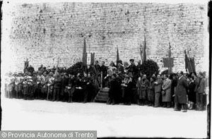 Palco delle autorità militari durante una celebrazione, P.zza della Fiera, TN