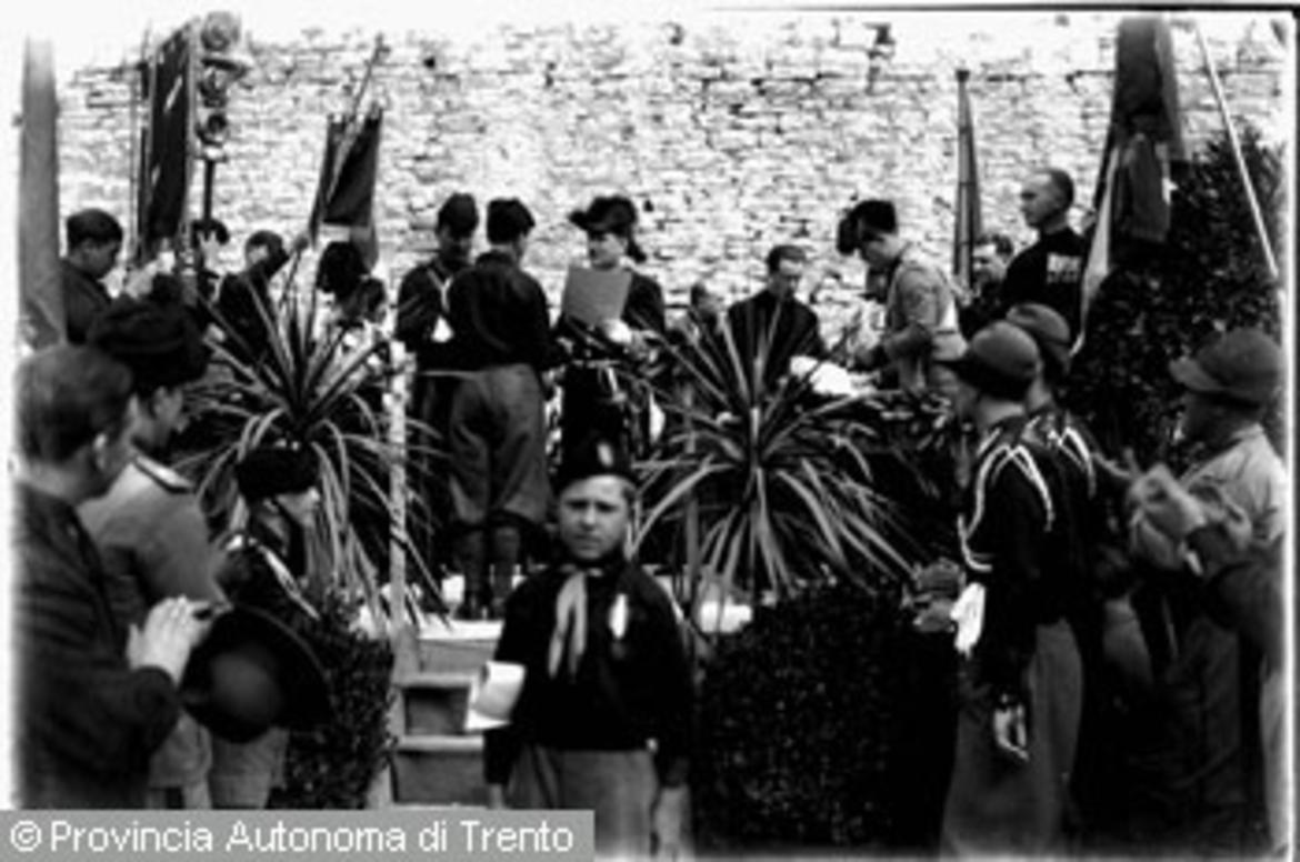 Palco delle autorità militari durante una celebrazione, P.zza della Fiera, TN
