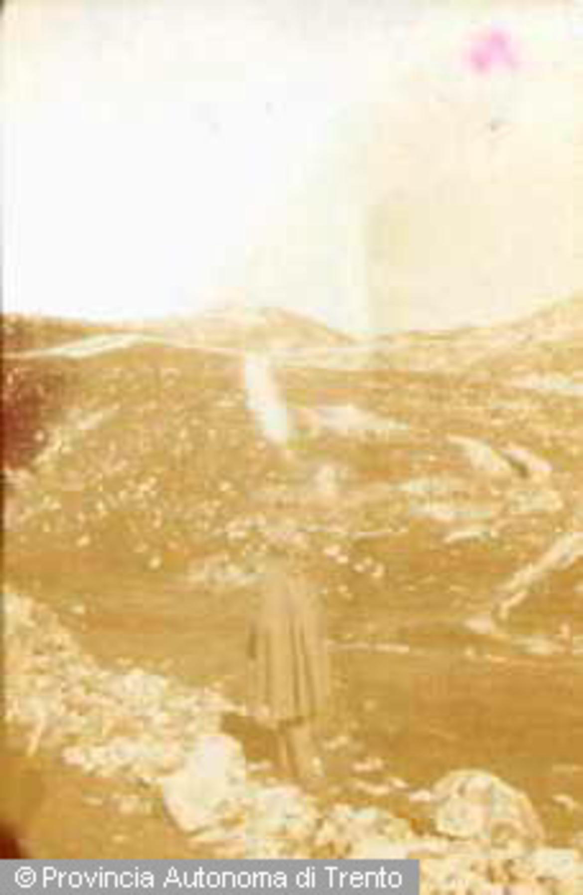 GRUPPO DEL NOVEGNO. UOMO IN DIVISA MILITARE ITALIANA AMMIRA IL PAESAGGIO SULLA CONCA DI NOVEGNO. 16 LUG. 1916