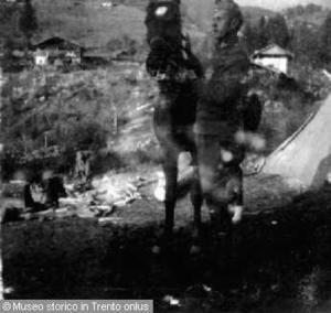 - VALLE DEI MOCHENI, SANT'ORSOLA (TN). RITRATTO A FIGURA INTERA DI MILITARE CON CAVALLO. 1915