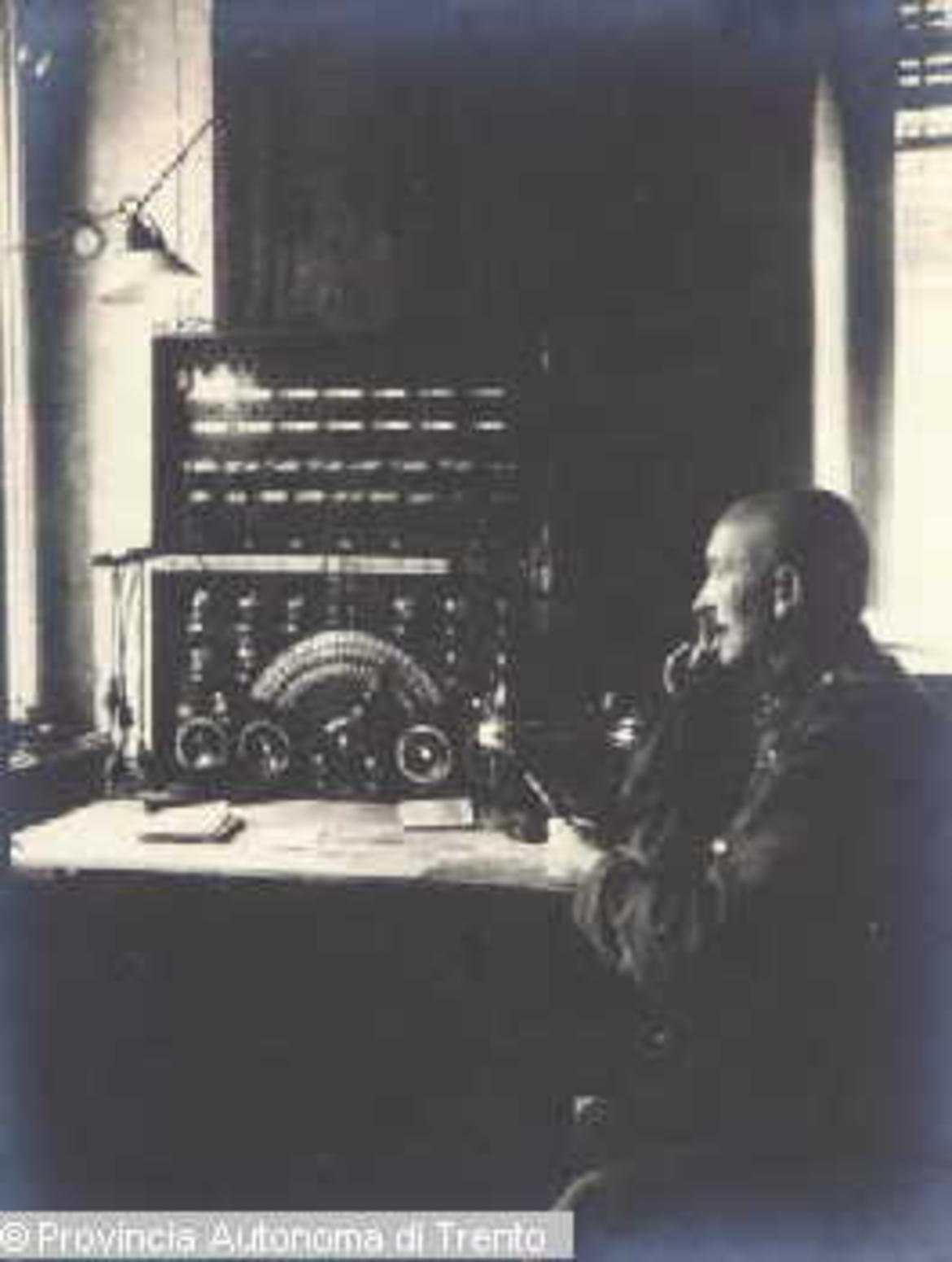 UOMO IN DIVISA MILITARE AUSTRIACA SEDUTO AL CENTRALINO. 1914-1918