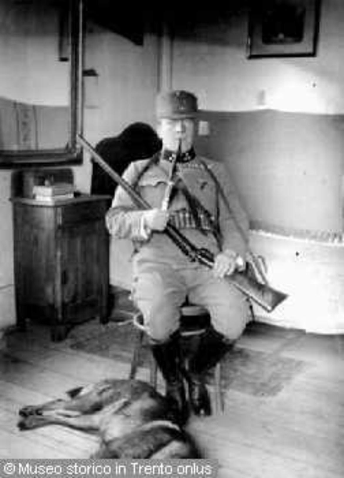 - CERNOVTSY (UCRAINA). RITRATTO A FIGURA INTERA DI MILITARE SEDUTO CON CANE. 1918