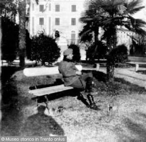 - RIVA DEL GARDA (TN). RITRATTO DI MILITARE SEDUTO NEL PARCO PUBBLICO DAVANTI AL LAGO. 1915