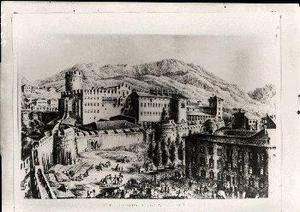 Riproduzione da stampa antica raffigurante veduta del Castello del Buonconsiglio