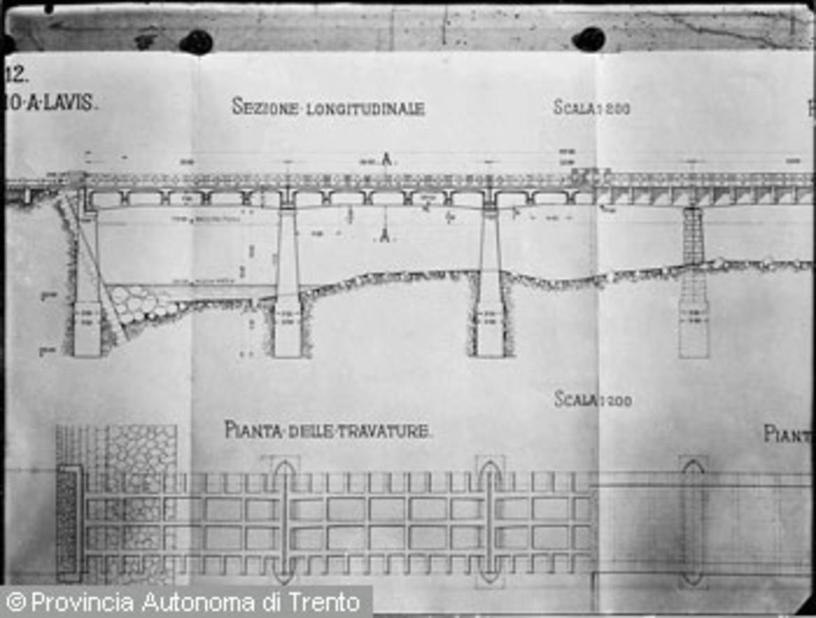 Riproduzione del progetto del ponte sul torrente Avisio a Lavis, sezione e pianta