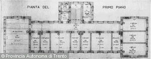 Riproduzione del progetto di un ospedale militare, pianta del primo piano