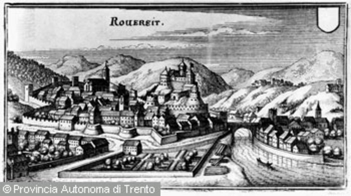 Riproduzione di un disegno raffigurante la città di Rovereto