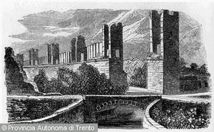 Riproduzione di un disegno raffigurante le mura diroccate di una città