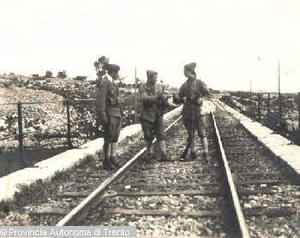 TRE LEGIONARI LUNGO I BINARI DELLA FERROVIA A FIUME