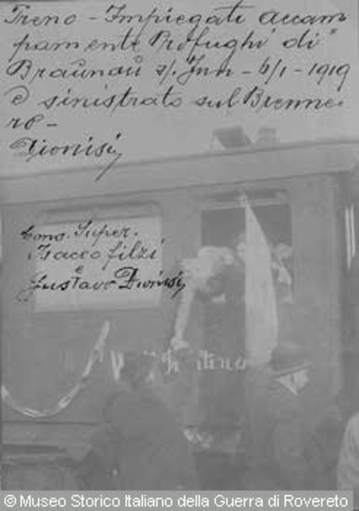 TRENO IMPIEGATI ACCAMPAMENTO PROFUGHI DI BRAUNAU S. INN E SINISTRATO SUL BRENNERO. CONS. SUPER. ISACCO FILZI E GUSTAVO DIONISI