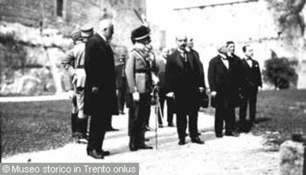 - TRENTO, CASTELLO DEL BUONCONSIGLIO. ADALBERTO DI SAVOIA, DUCA DI BERGAMO, ASSIEME AD AUTORITÀ NELLA FOSSA DELLA CERVARA DURANTE LA SUA VISITA. 28 SET. 1923