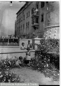 Trento, Castello del Buonconsiglio, bambini nel giardino del Magno Palazzo