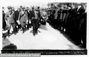 Trento, Castello del Buonconsiglio, re Vittorio E. III passa in rivista i legionari trentini (11.10.1921)