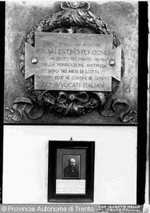 - Trento, Castello del Buonconsiglio, targa commemorativa del patriota avv. Valentino Peratoner