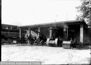 Trento, cantiere presso S. Lorenzo, macchine per l'asfaltatura