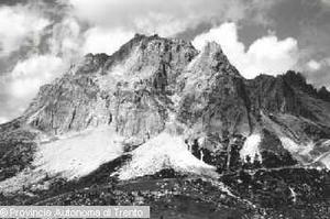 TOFANE, MONTE CASTELLETTO. VEDUTA DEL MONTE DOPO L'ESPLOSIONE DI UNA MINA SOTTERRANEA. 1916