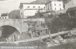 - VAL POSINA, BAZZONI (VI). SCORCIO DEL PAESE, IN PRIMO PIANO PONTE IN LEGNO. NOV. 1917