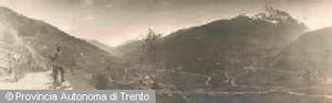 ALTA VAL CAMONICA. VEDUTA DELLA VALLE DA VEZZA D'OGLIO (BS), IN PRIMO PIANO MILITARE. GIU. 1916