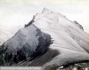 PANORAMICA IN QUOTA DI UNA MONTAGNA INNEVATA. 1915-1918