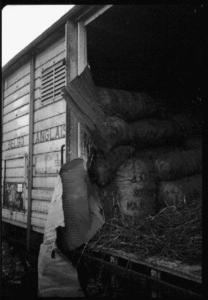 Vagone merci (particolare dell'imballo per il trasporto delle patate)