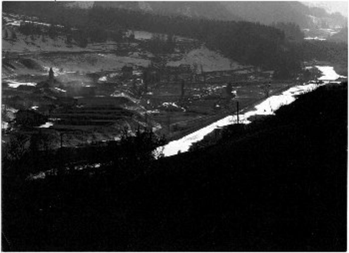 Val di Fiemme / Veduta in controluce del torrente Avisio e dell'abitato di Masi di Cavalese