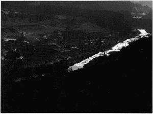 Val di Fiemme / Veduta in controluce del torrente Avisio e dell'abitato di Masi di Cavalese