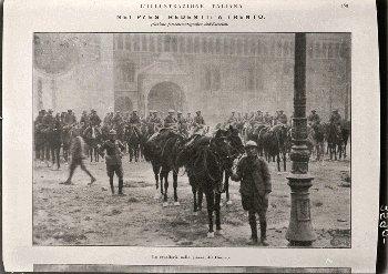F.lli Pedrotti (1929 - 1979)Riproduzione da rivista raffigurante la cavalleria in P.zza Duomo