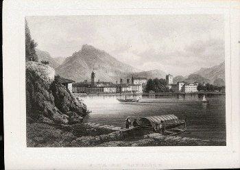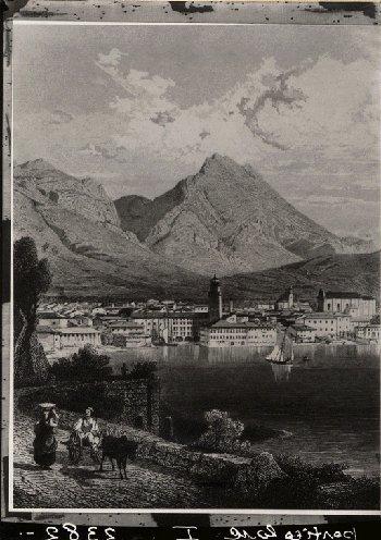 F.lli Pedrotti (1929 - 1979)Riproduzione da stampa antica raffigurante veduta di Riva del Garda con il lago