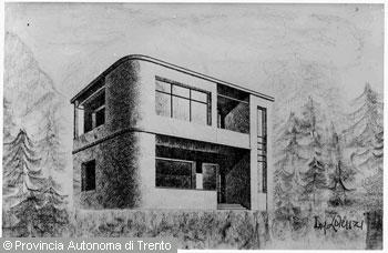 Perdomi Sergio (1887 - 1935)Riproduzione del progetto di una casa di abitazione, bozzetto in prospettiva